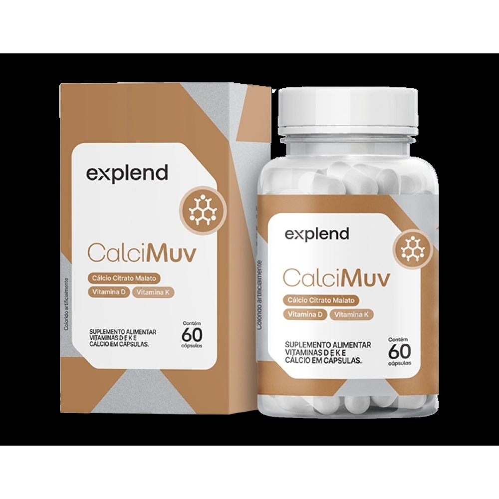 Suplemento alimentar de Vitamina D e K e cálcio em cápsulas.