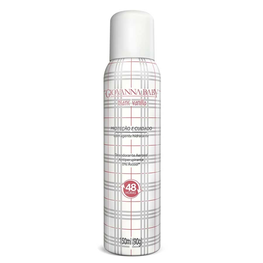 DESODORANTE AEROSOL ANTITRANSPIRANTE GIOVANNA BABY BLANC VANILLA 150ML O Desodorante Aerosol Giovanna Baby Blanc Vanilla foi desenvolvido para proporcionar proteção por até 48 horas, deixando um agradável perfume e promovendo sensação de frescor o dia todo.